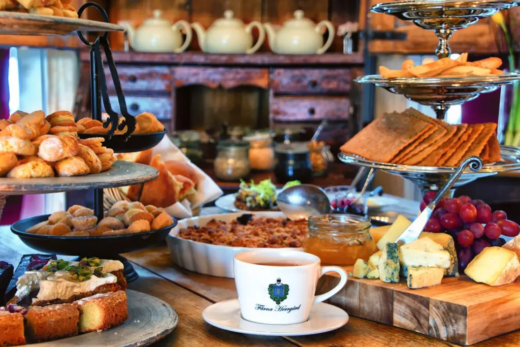 I Skinnskatteberg tar man sötsaker på allvar. Färna Herrgård har skapat ett svenskt afternoon tea där klassiker får stort utrymme. Scones, marmelader och lemoncurd finns självklart med, men även smulpajen, sju sorters kakor och morotskakan.